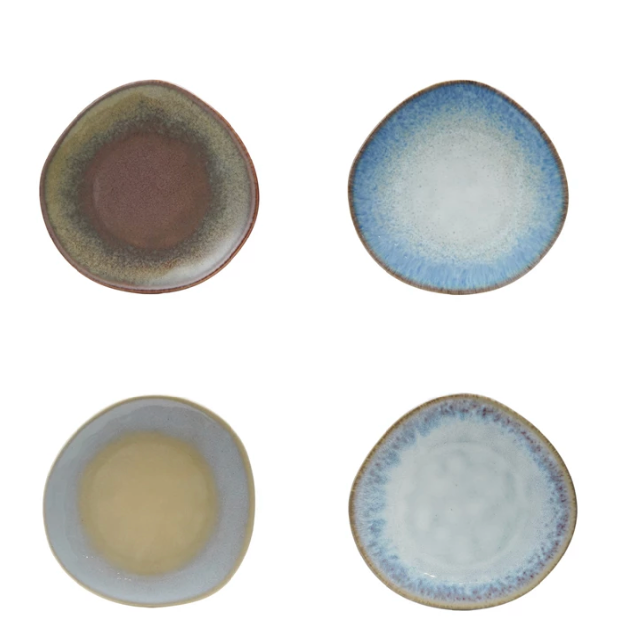 Approximately 7" Round Stoneware Organic Shaped Plate, Reactive Glaze, 4 Colors